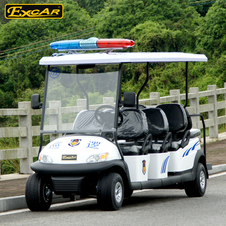 รถลาดตระเวนไฟฟ้า 4 ที่นั่ง สีขาว พร้อมโลโก้ที่กำหนดเอง 3.7KW 48V แบตเตอรี่ Trojan Electric prowl car