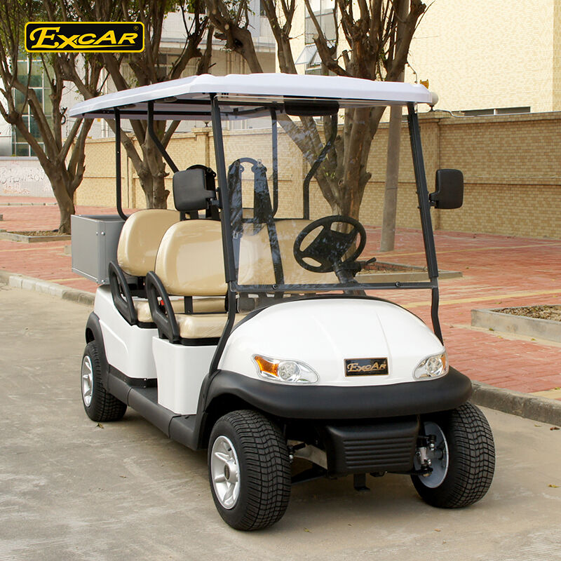 สีขาว 48V แบตเตอรี่ทรอจาน คาร์โก้ กอล์ฟ คาร์ค โฮเต็ล บุ๊กกี้ คาร์ค 4 ที่นั่ง การขนส่ง